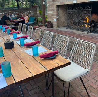 pros: lovely courtyard setting with a roaring fireplace and specialized menu for dogs cons: tortilla chips don't taste homemade