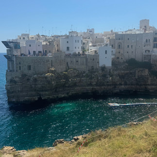 Pogliano a Mare is one of the more tourist-heavy towns in Puglia you'll visit. Porto Cavallo is the picturesque cove the town is famous for, packed with beachgoers and likely one of the most photographed places in Apulia. When we visited, Red Bull was setting up for a free-fall diving competition, preparing a diving board perched almost one hundred feet from the sea. Stop along the promenade to take in the stunning design of the town, built high upon the cliffs overlooking the Adriatic Sea. Then stroll on Via Roma for a lively stretch of shops and restaurants. Prepare yourself, finding a parking spot is very difficult but worth the effort.